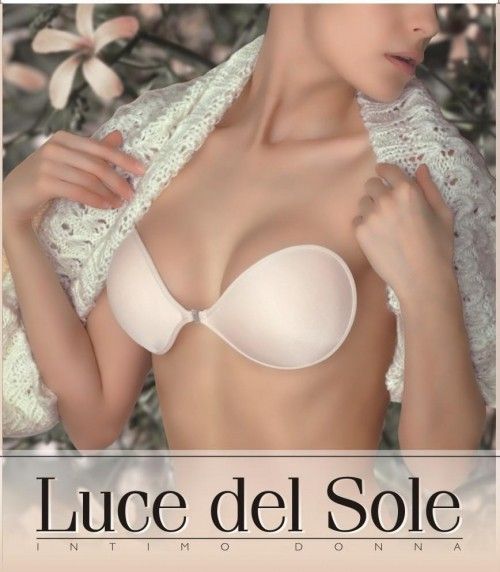 Бюстгальтер невидимка, формованные чашки с клейким слоем силикона внутри и тканью телесного цвета снаружи.
