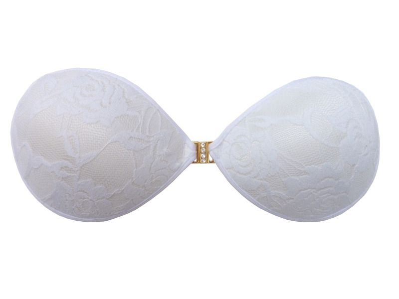 Кружево белое сверху чашек, силиконовый гель внутри, застежка украшена кристаллами.